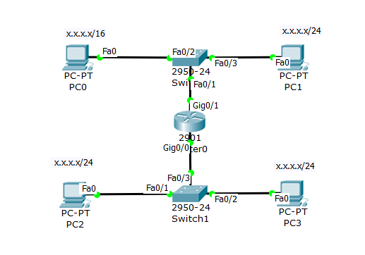 当PC0(/16)去pingPC 2/3时,PC0会认为他们在同一个网段,发出ARP请求。当ARP请求到达路由器时,若开启了代理ARP,会代替PC2/3给PC0回应。告诉PC0,路由器的G0/1的MAC地址就是PC2/3的MAC地址,如此这般如此这般,就完成了代理ARP的操作,且保护了PC2/3的MAC地址隐私。